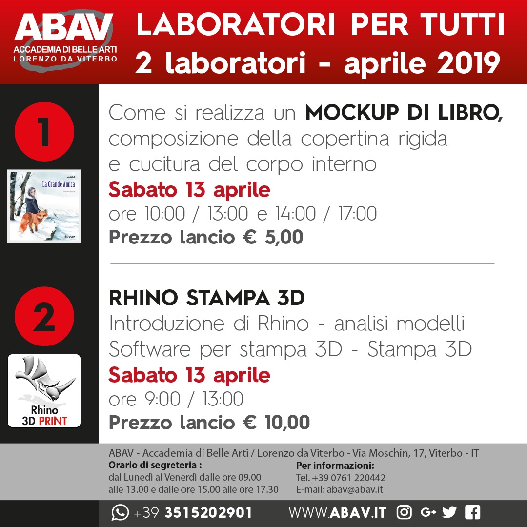 View Larger Image Laboratori Aperti a Tutti – Sabato 13 Aprile 2019 By Segreteria Abav|2019-03-28T14:49:02+01:00March 28, 2019|Consigli e curiosità|0 Comments Share This Story, Choose Your Platform! About the Author: Segreteria Abav Related Posts Open Week – 50° anniversario dell’Accademia di Belle Arti “Lorenzo da Viterbo” dal 7 al 14 giugno 2025 Open Week – 50° anniversario dell’Accademia di Belle Arti “Lorenzo da Viterbo” dal 7 al 14 giugno 2025 Corso di Illustrazione con Gabriel Pacheco – 3 appuntamenti Corso di Illustrazione con Gabriel Pacheco – 3 appuntamenti PeF 30 cfu/cfa (ex Art.13 DPCM 4/08/23) – Avvio Nuovi Corsi a.a. 2024/2025 – Scadenza iscrizioni 31/01/2025 PeF 30 cfu/cfa (ex Art.13 DPCM 4/08/23) – Avvio Nuovi Corsi a.a. 2024/2025 – Scadenza iscrizioni 31/01/2025 Mostra “Forme a con – tatto” Mostra “Forme a con – tatto”