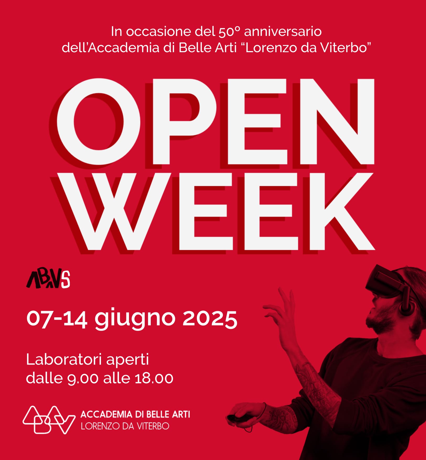 In occasione del 50 anniversario della fondazione dell’dell’ Accademia di Belle Arti “Lorenzo da Viterbo” , dal 7 al 14 giugno 2025 l’ABAV aprirà le sue porte per celebrare l’eccellenza dell’Alta Formazione Artistica.